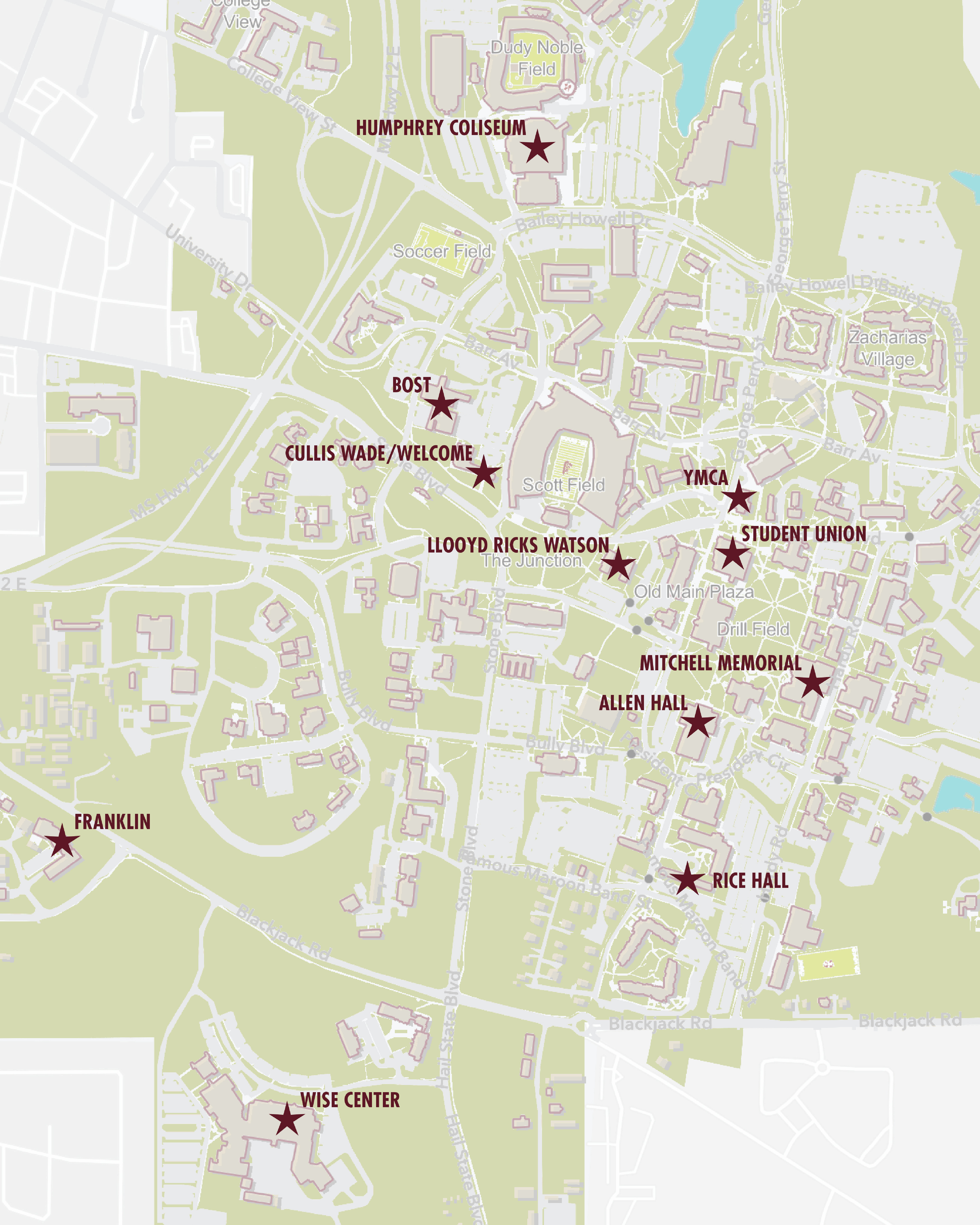 The Colvard Student Union and the Cullis Wade Depot/Welcome Center will be available during most game day events on campus.